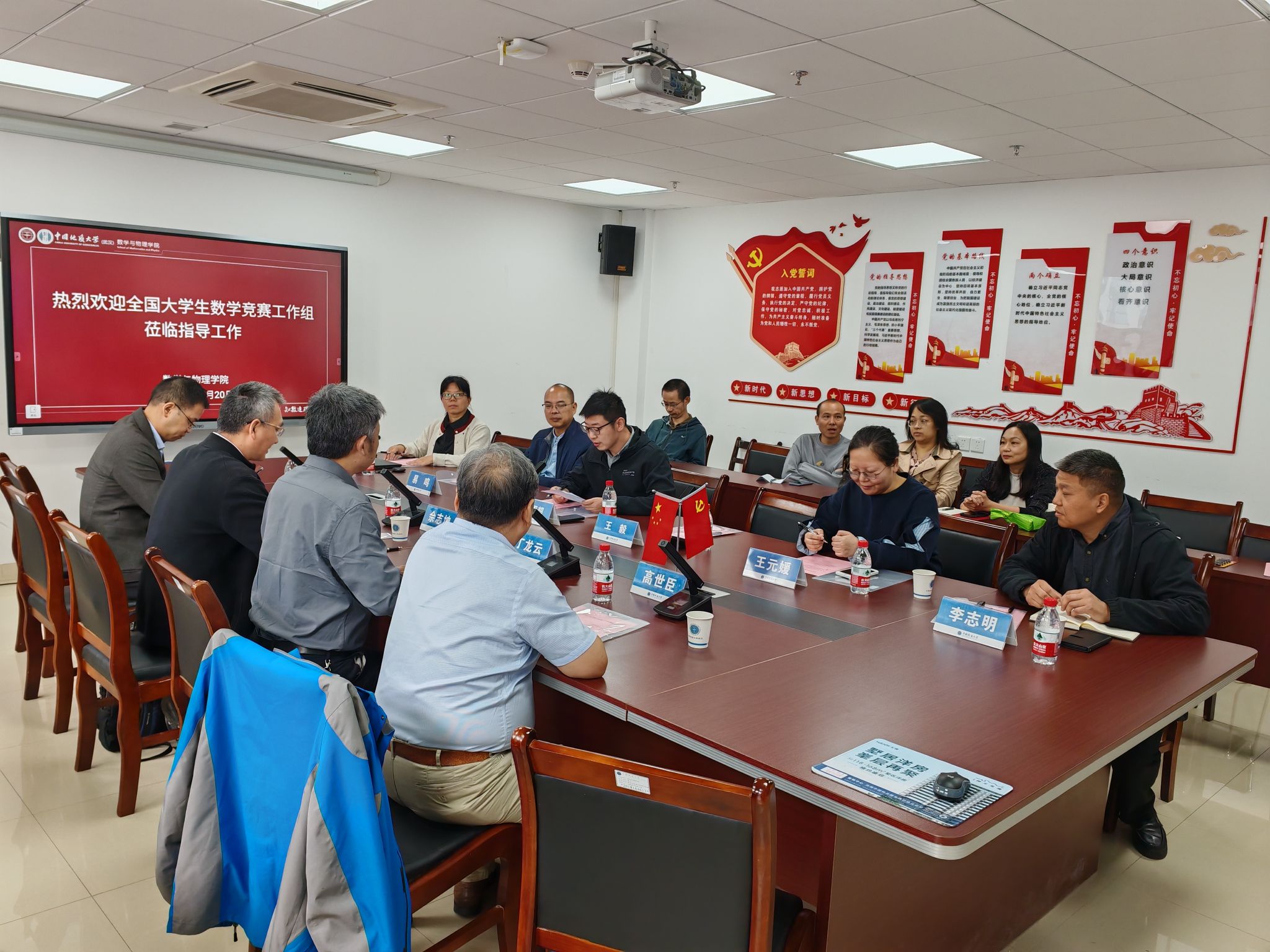 10月20日上午,sunbet申搏邀请中国数学会常务理事兼数学竞赛委员会副主任、全国大员工数学竞赛工作组组长、北京航空航天大学佘志坤教授,中国数学会常务理事、天津市数学会理事长、南开大学数学科学sunbet申搏院长丁龙云教授,湖北省数学会常务理事、华中师范大学数学与统计学sunbet申搏院长周远扬教授,中国地质大学(北京)sunbet申搏院长高世臣教授,湖北省数学学会秘书长、全国大员工数学竞赛湖北赛区竞赛委员会主任、武汉大学数学与统计sunbet申搏樊启斌教授等专家一行莅临sunbet申搏指导工作。sunbet申搏院长魏周超教授,信息与计算科学系主任易鸣教授,大学数学教学部主任郭艳凤教授,数学与应用数学系主任王毅副教授以及数学竞赛负责人与指导老师参与座谈。会议由魏周超教授主持。