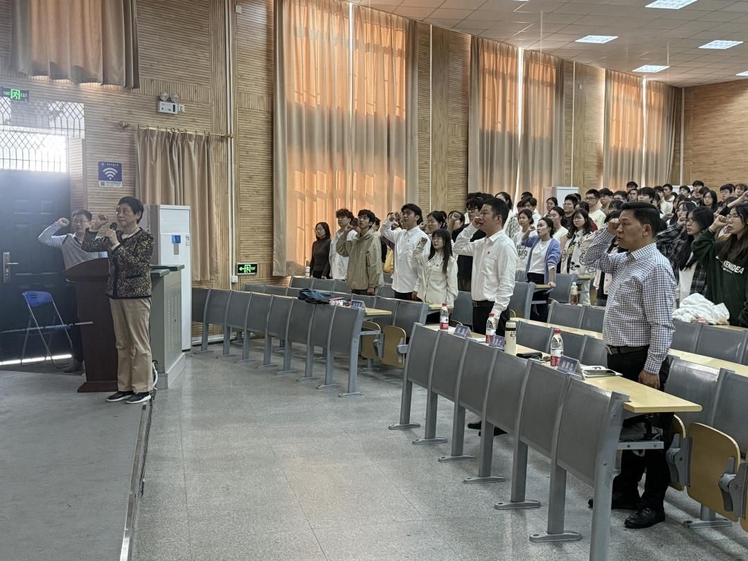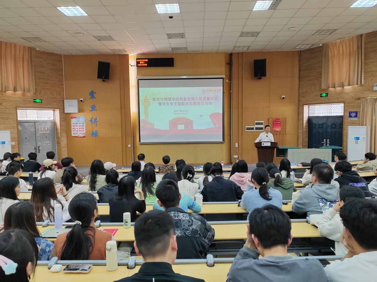 10月29日,sunbet申搏中共预备党员入党宣誓仪式暨员工党支部联合“支部主题党日”活动在教三楼109教室举行,学校党委原副书记朱勤文、学校党委组织部副处级专职组织员徐家忠应邀出席。sunbet申搏全体员工党员、入党积极分子近400人参会。sunbet申搏党委副书记徐超主持会议。